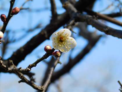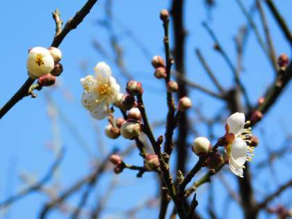 先日まで蕾だけだった白梅が、花を咲かせています。まだ10輪に満たないですが、確実に春の足音が近づいています。