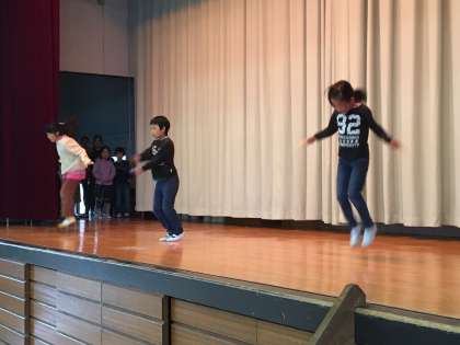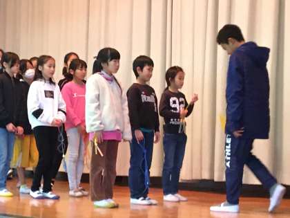 体育委員会がな「わとび集会」で、クラスの代表になった子を表彰しました。
