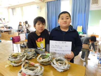 輪投げの輪も、もちろん手作りでした。6年生が楽しそうに遊んでいました。