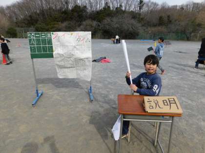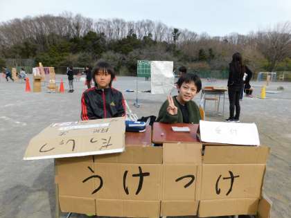 校庭では、5の2が「30秒おにごっこ」のお店屋さんを開いていました。