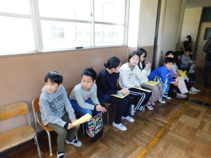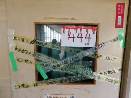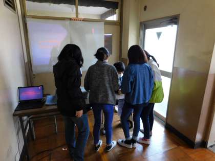 6年生は3クラスとも「お化け屋敷」を開きました。3組は視聴覚室です。やはり行列ができていました。
