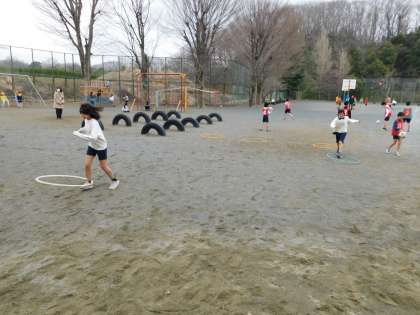 もう片方では、バスケットボールとフラフープクラブが活動していました。