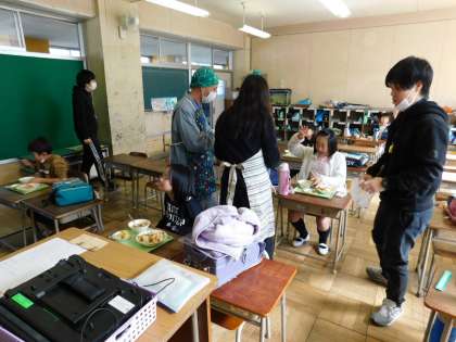 給食は先生方が給仕、配膳します。