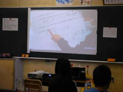 プリントを大写しにして、考え方を説明しています。指導主事の先生も熱心に授業を見てくれていました。