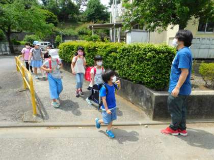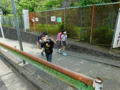 2年生が登校してきました。学童の先生もお出迎えしてくれています。