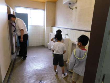 1年2組の様子です。おトイレの使い方も学習しました。