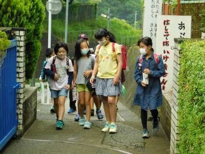 門が狭いので、瞬間、三密状態です。声をかけると広がってくれます。