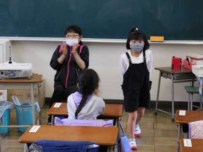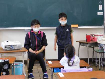 1年2組の様子です。自己紹介をしていました。好きな食べ物も紹介していました。