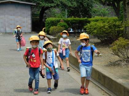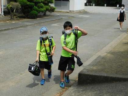 午後の子供たちが登校してきました。1年生も元気に登校です。