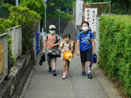 1年生を挟んで、上級生がふたり。ほのぼのとする光景です。