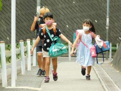 午前中は曇り空だったので、マスク登校も、やや楽そうでした。