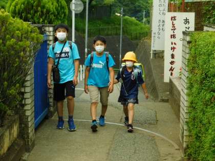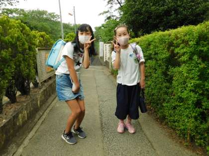 いつもポーズを決めて、挨拶してくれる2人です。ありがとう。1年生と一緒に登校。ご苦労様。