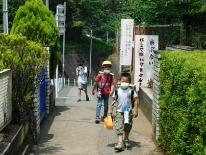 6月5日(金)午後の子供たちが登校してきました。1年生も帽子をとって、挨拶してくれました。えらいですね。