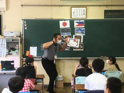 Mr.ジョー先生と4年生で初めての外国語活動でした。