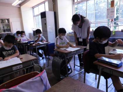 3年1組の様子です。新しいサポーターの先生が入っていました。