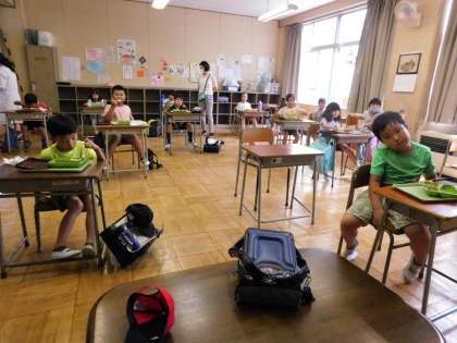 昼食を食べる子供たちも大勢になりました。18日からは全学年で給食が始まります。
