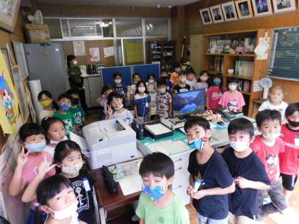 1年2組の子が校長室に来てくれました。