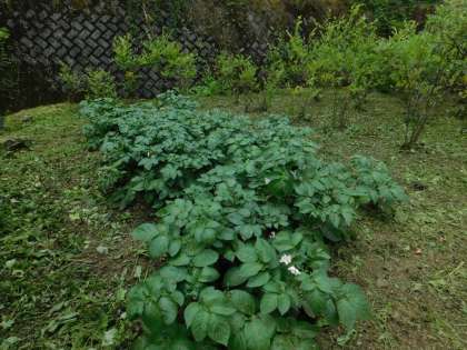 用務主事さんがブルーベリー畑の草刈りをしてくれました。6年生のジャガイモも順調に育っています。