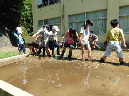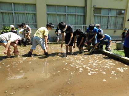 1組の田植えは、転ぶ子もいなくて無事に終了しました。お疲れ様。