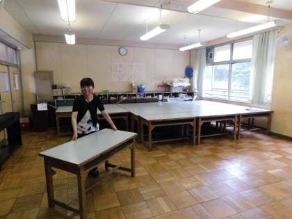 15日から始まる通常授業に備えて、3年生の教室移動を、職員で行いました。