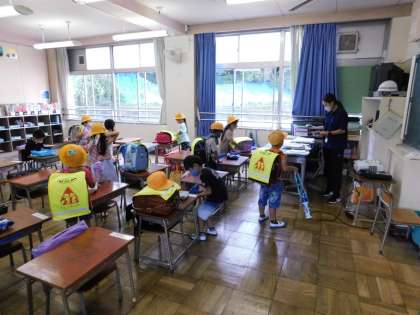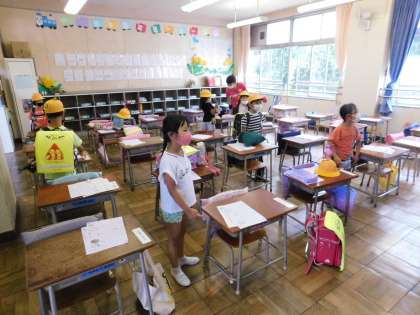 手洗い後は、教室に入り、ランドセルから学習用具を取り出します。1年生もしっかりと準備ができていました。