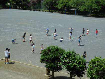 子供たちは、外で思いっきり遊んでいました。