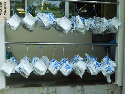 15日から始まった給食の牛乳が、びんから紙パックに代わりました。紙パックを干して、業者さんに回収してもらいます。