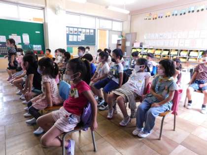6月18日、1年生が同時配信ソフトを使って、6年生と自己紹介をするなど、交流活動を行いました。早く顔と名前を覚えられるといいですね。