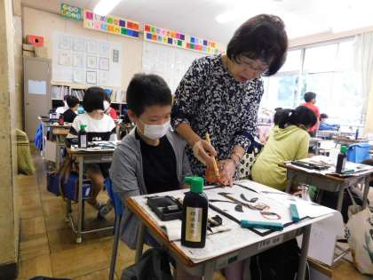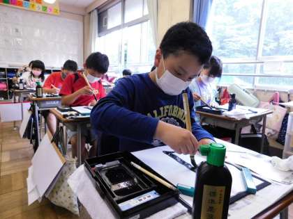 4年生は、講師の先生が毛筆の指導をしてくれています。
