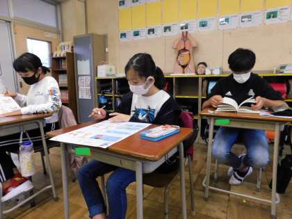 6年生は3クラスとも、テストタイムでした。早く終わった子は読書やドリルをしていました。