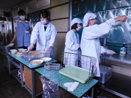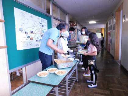 3年生は39人の大所帯ですが、だんだんと配膳にも慣れてきました。上手になっています。