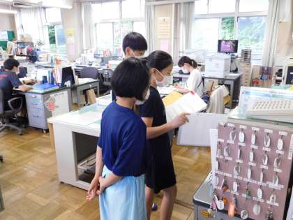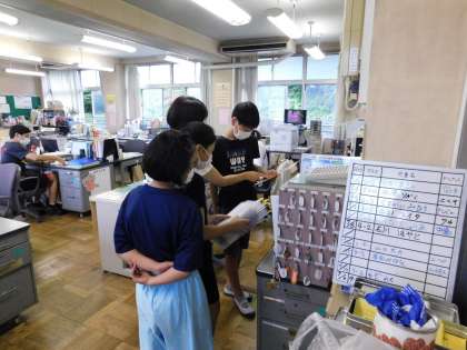 欠席板に記入した後は、出席カードを職員室の棚に戻してくれます。養護の先生から教えてもらっています。
