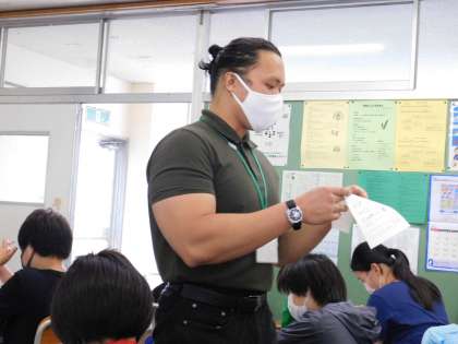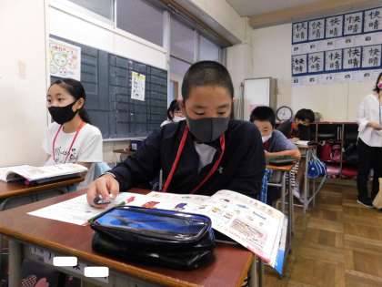 9日の授業風景です。6年3組はALTの先生も入った外国語の学習中でした。