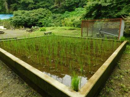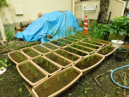 5年生が植えた稲も順調に育っています。用務主事さんがプランターにも植えてくれています。