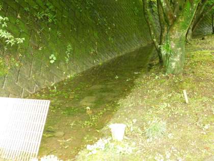梅雨で連日のように雨が降っています。擁壁の際にも、染み出した水が見えています。