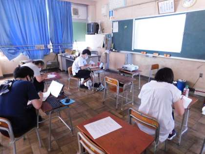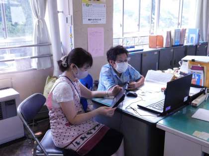 今回は、Web会議ツール「Teams」を使ったオンライン研修会を実施しました。各先生が、いろいろな部屋でパソコンを用いて、双方向で研修を行いました。