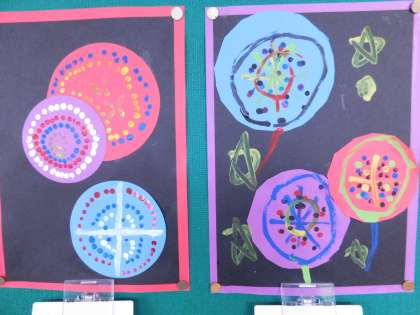 綿棒やストロー、つまようじなど、いろいろなものを使って、花火を打ち上げました。