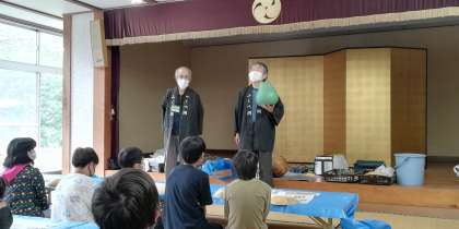 ふくべ細工が始まりました。まずは講師の先生から話を聞きます。