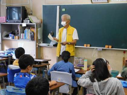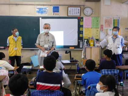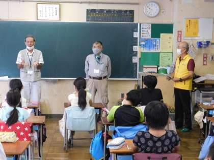 天気が良ければ、実際に城山川に行く予定でしたが、雨が降ってきたため、急遽、教室での学習となりました。