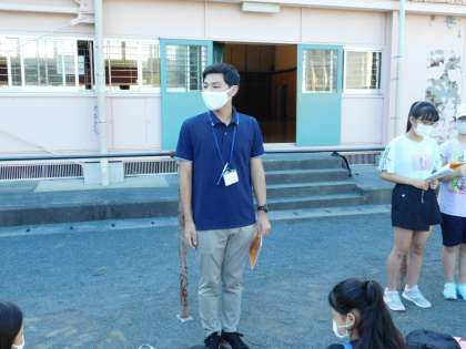 まずは出発式。司会の子と先生からの話です。