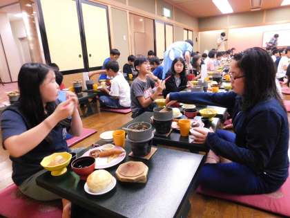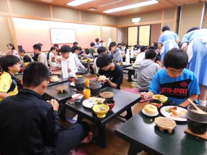 夕食中。