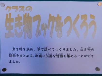 3年生は理科、総合、国語で「生き物」を扱っています。今回は国語で、「生き物ブック」を作ろうに挑戦しました。