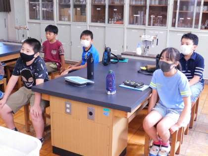 本来であれば、吸着剤を使った実験は、班ごとにできるのですが、コロナの影響で、デモンストレーションのみになりました。残念です。