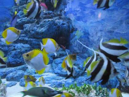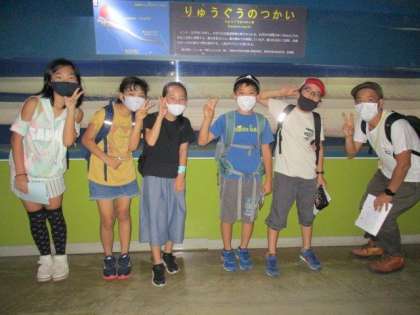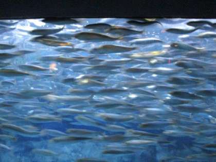 1組を追っかけ、水族館に走ります。熱帯魚やイワシの群れが迎えてくれました。