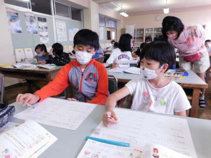 物やお金の使い方を考えていました。子供たちは近くのお友達と、小声で意見を交わしていました。