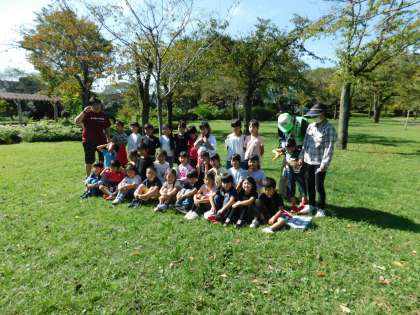 綾南公園に着くと、すぐにトイレ休憩、クラス写真です。