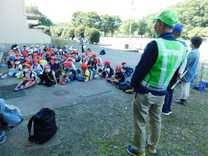 帰校式です。よく頑張りました。最後に学校安全ボランティアの方に、みんなでお礼を言いました。