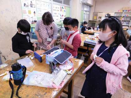 先生からもアドバイスをもらいながら、意欲的に取り組んでいました。