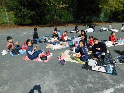 全員が校庭に出て、お弁当を広げる姿は、気持ちよかったです。