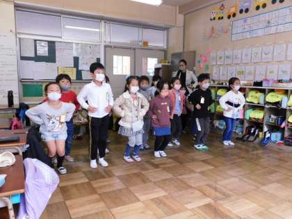 6日、1年生が教室で、14日の踊りの練習をしていました。